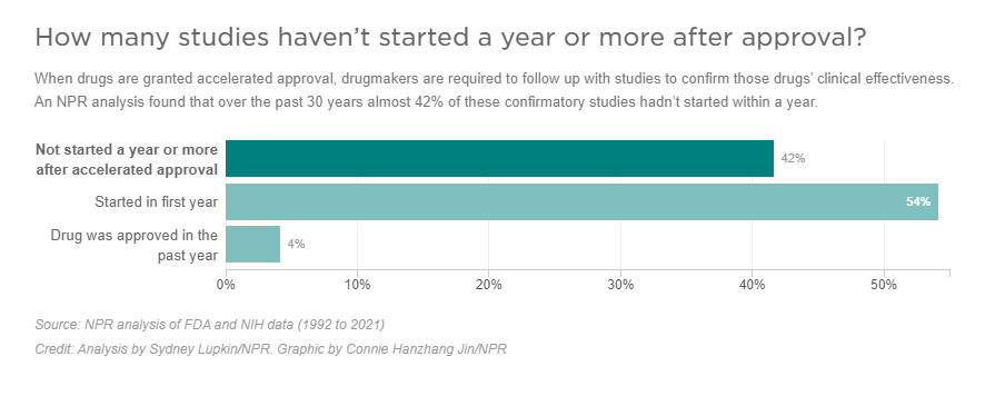 As NPR states, this has been ongoing for 30 years, with 42% of drugs not having started their trial for a year or more: