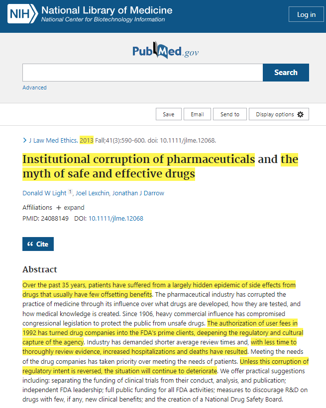 From 2013: “Over the past 35 years, patients have suffered from a largely hidden epidemic of side effects from drugs that usually have few offsetting benefits… Industry has demanded shorter average review times and, with less time to thoroughly review evidence, increased hospitalizations and deaths have resulted. Meeting the needs of the drug companies has taken priority over meeting the needs of patients. Unless this corruption of regulatory intent is reversed, the situation will continue to deteriorate.”